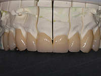 Une « facette en céramique » est une restauration pelliculaire en céramique, collée sur la ou sur les dents disgracieuses après préparation a minima de la face externe et visible de la dent.